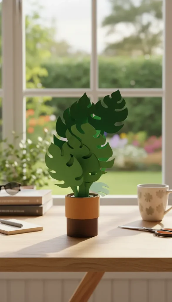 The laser precision of a plotter allows you to cut complex slots and lacy edges of leaves that are nearly impossible to replicate by hand. Combining different shades of green cardstock—from olive to emerald—will create the necessary volume and «juiciness» of the entire composition.